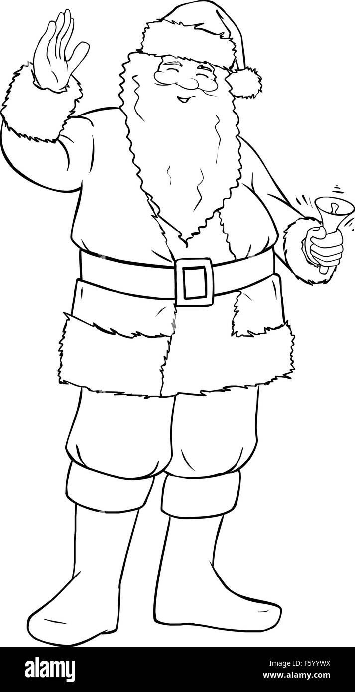 Página para colorear la ilustración vectorial de Santa Claus sonriente y suena una campana y agitando su mano para Navidad Imagen Vector de stock - Alamy